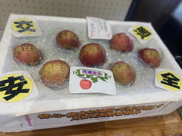 毎年、川西交通安全協会より交通安全を呼びかけるリンゴが県交通安全運動推進佐久地方部(佐久地域振興局総務管理課が事務局)に贈呈され、同時に展示しています。このリンゴには「これをきっかけに多くの皆様に交通安全をより身近に感じていただき、交通安全への意識を一層を高めてもらいたい」という願いが込められています。