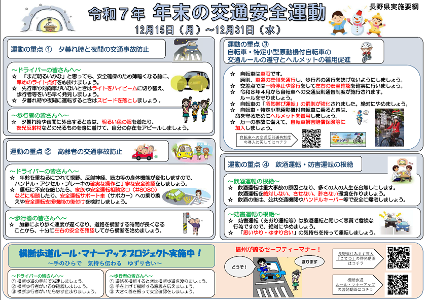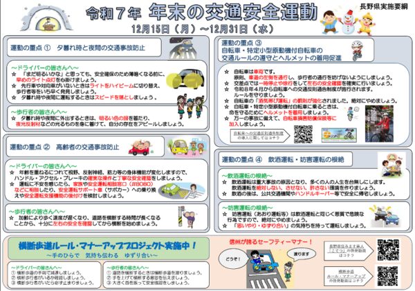 12月15日(月)から12月31日(水)まで『年末の交通安全運動』です。