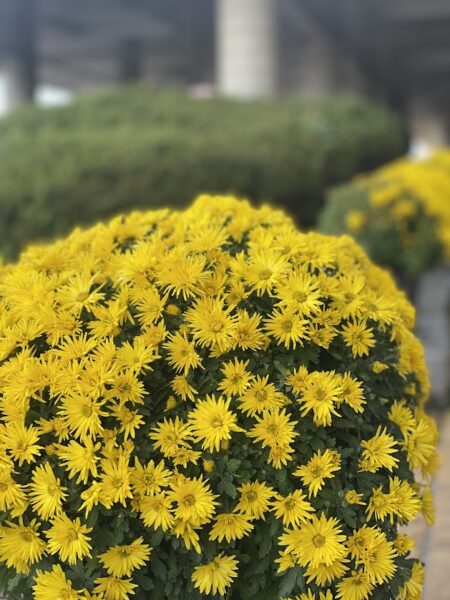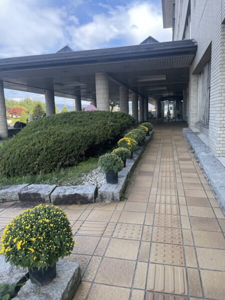 合同庁舎正面玄関のスロープには、10月中旬に南佐久建設業協会の方が飾られた『玉菊』が見頃です。
