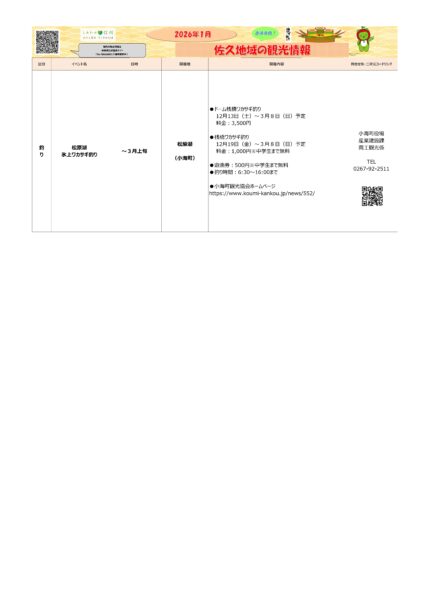 ▶問い合わせ先:小海町役場産業建設課商工観光係