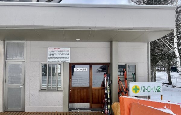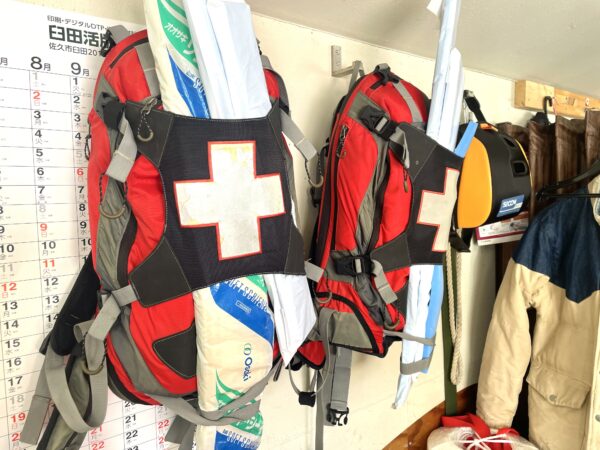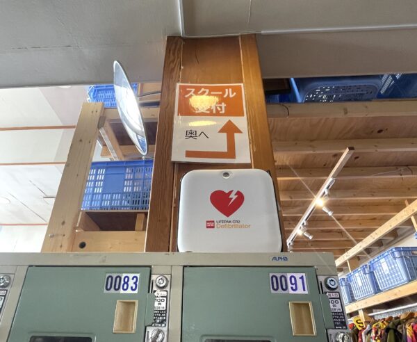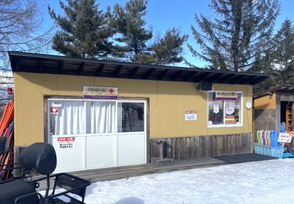 キッズパークの下に、パトロール隊の詰所と救護所があり、救護所の中にはAEDが設置されています。救護キットも置かれていて、何かあればパトロール隊員が迅速に救助に向かいます。