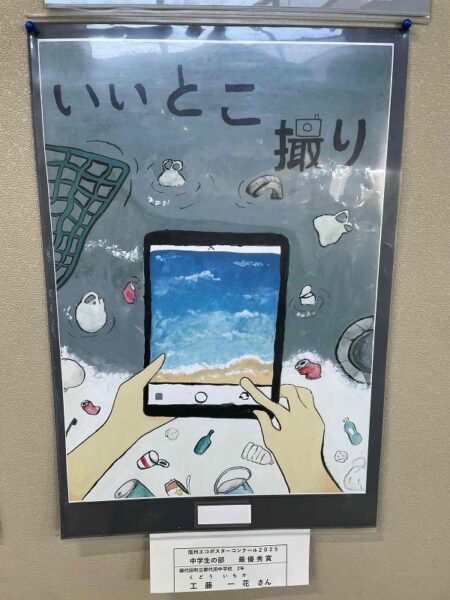 「信州エコポスターコンクール2025」の最優秀作品及び佐久地域からの入賞・入選作品を展示しています。