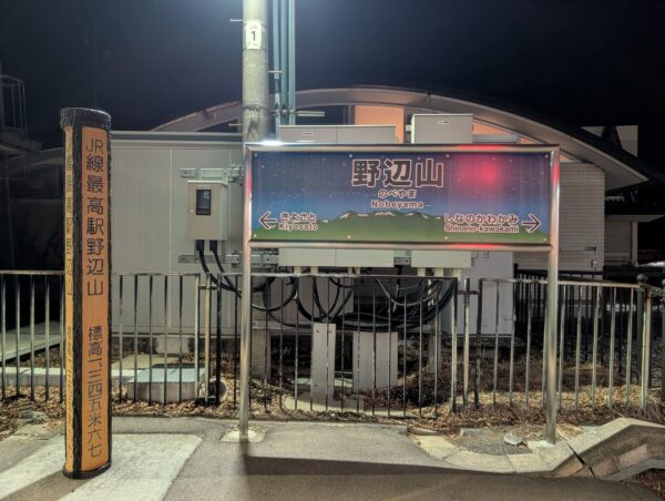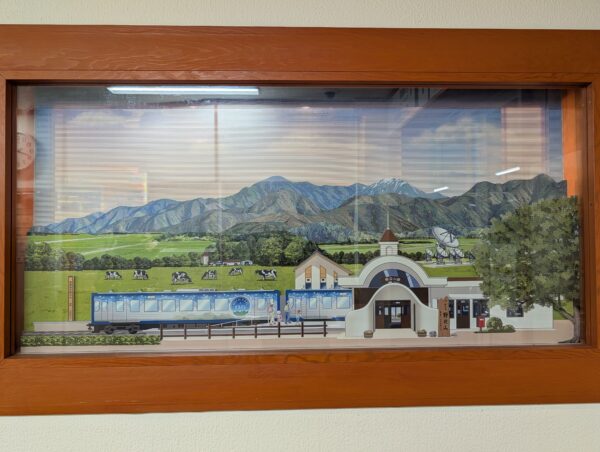 普段鍛えていない私が2日で約100キロを歩いた結果、壁や手すりがないと歩くのがしんどい状態になっていた。まだ疲れていないと自分に言い聞かせて歩いてきたが、小淵沢駅に到着したところで既に糸は切れている。野辺山駅の夜の外観写真を撮るという発想すら失われていた。下の写真は野辺山駅舎に飾られていたもの。