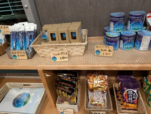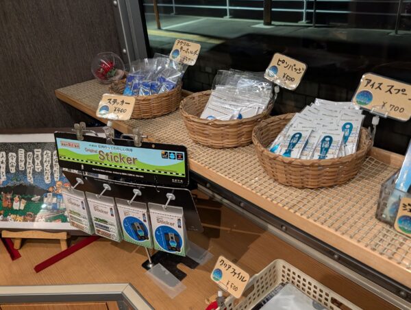 そこには小海線グッズやおつまみが並ぶ。写真を撮りそびれたが、アルコールやサイダーも売られている。