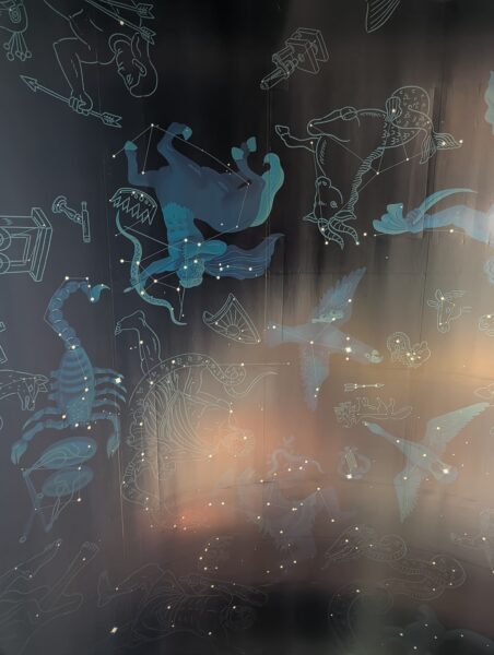 天井には小さなプラネタリウム。ここで星空案内人の方が解説をしてくださった。