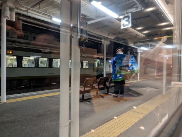 そうこうしているうちに中込駅到着。寒い中にもかかわらず駅員さんにお出迎えしていただいた。
