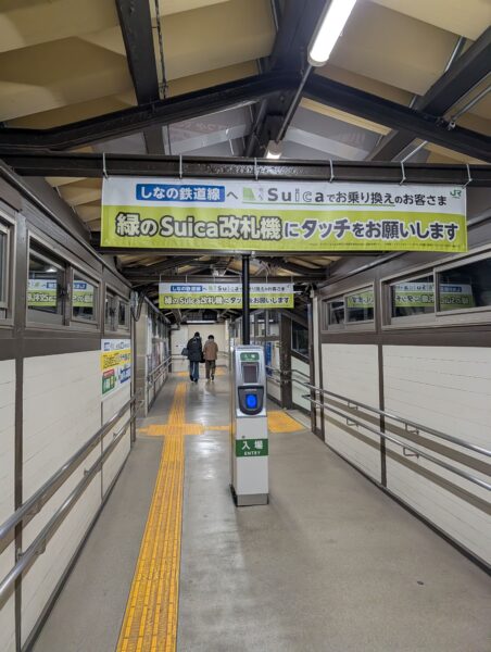 (小諸駅の乗換こ線橋の簡易Suica改札機)