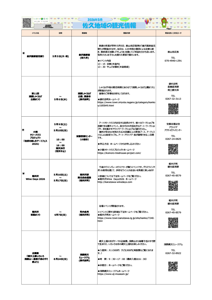 5月は大型連休がありますね、佐久地域も楽しいイベントが盛りだくさんです!