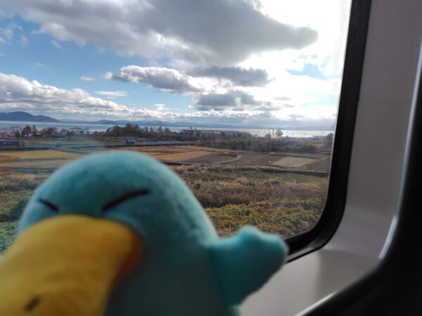 特急サンダーバードは、琵琶湖が見える左側の席にしました。