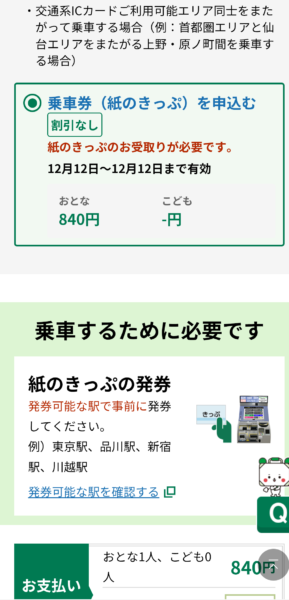 えきねっとで、乗車券(紙のきっぷ)を申込むを選びます。