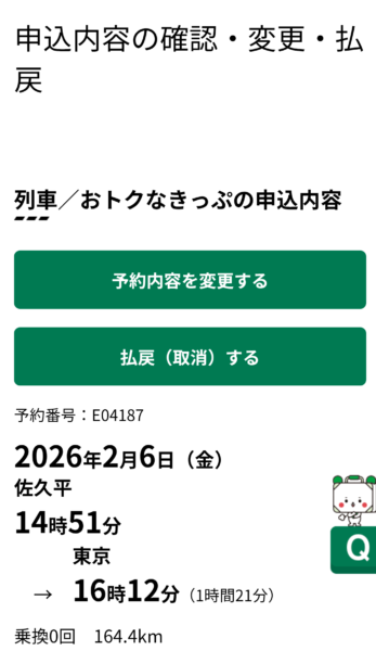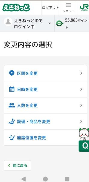でも、出発時刻の4分前までえきねっとで変更ができるんですよね。