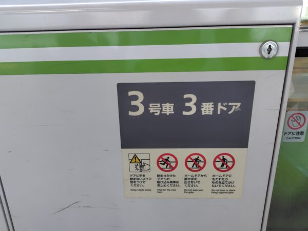 有楽町の南側へ行くには、山手線の外回りの場合3号車3番ドアが階段の近くです。