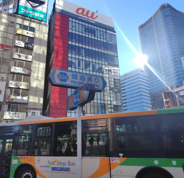 ガード下を南東に進んで晴海通りに出たら、右(西側)へ行ってもいいし、