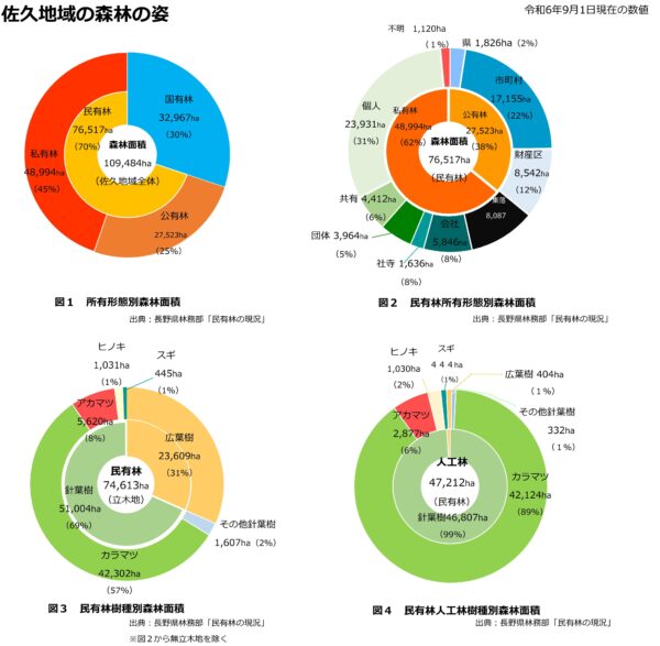 また、佐久地域の森林・林業の紹介として、森林の現況をグラフを用いて分かりやすく紹介しています。