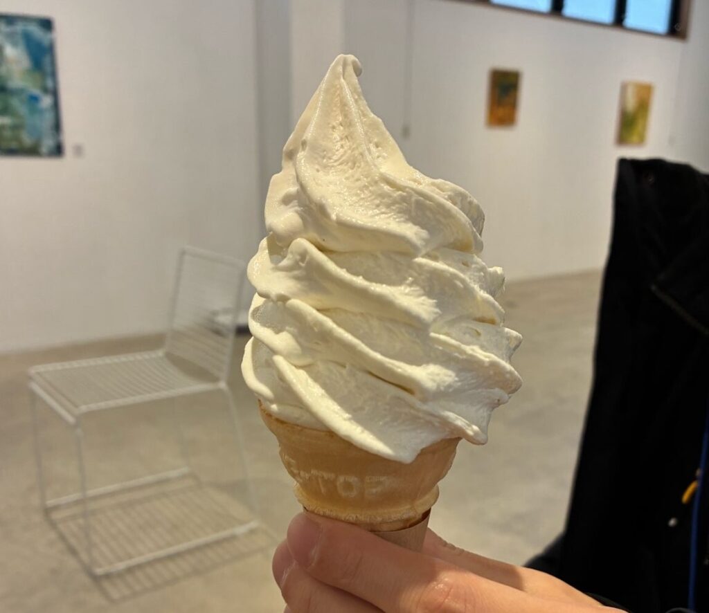 取材後はカフェで「放牧ソフトクリーム」をいただきました。濃厚なのにすっきりした後味はここでしか味わえない逸品!