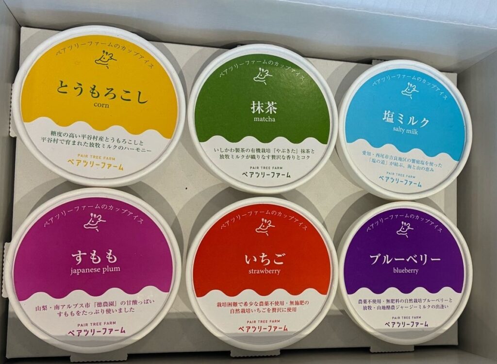 林さんご夫婦は、カップアイスの販売にも力を入れています。現在7種類を展開し、今年から平谷村のふるさと納税返礼品にもなっています。