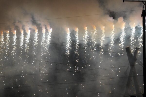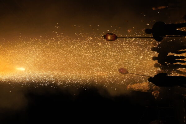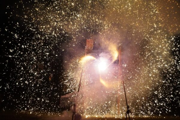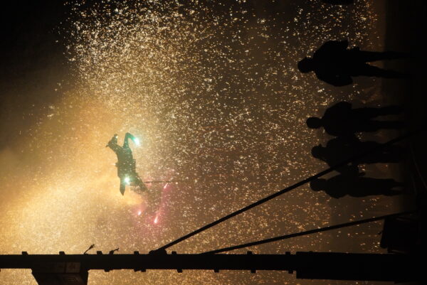 最後の大三国では、柱から火花が炎のシャワーのように降り注ぎ、暗闇を黄金色に染める光景は圧巻でした。観客も同志会の皆さんと一緒に「わっしょい、わっしょい」と掛け声をかけながら盛り上がり、会場全体が一体感に包まれました。