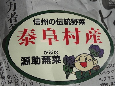 12/12、信州の伝統野菜で泰阜村産の源助蕪菜を購入しました