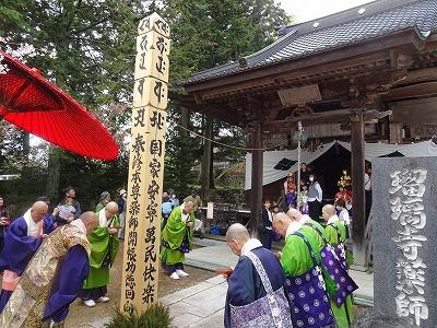 この日は12時半過ぎから稚児行列と大般若転読があり、13時半からは招待で羽広の獅子舞が披露され、14時過ぎからは陵王の舞と瑠璃寺の獅子舞が披露されました![]()