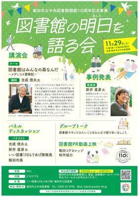 11/29(土)は、110周年記念事業として、「図書館の明日を語る会」と題して記念講演も開催されます![]()