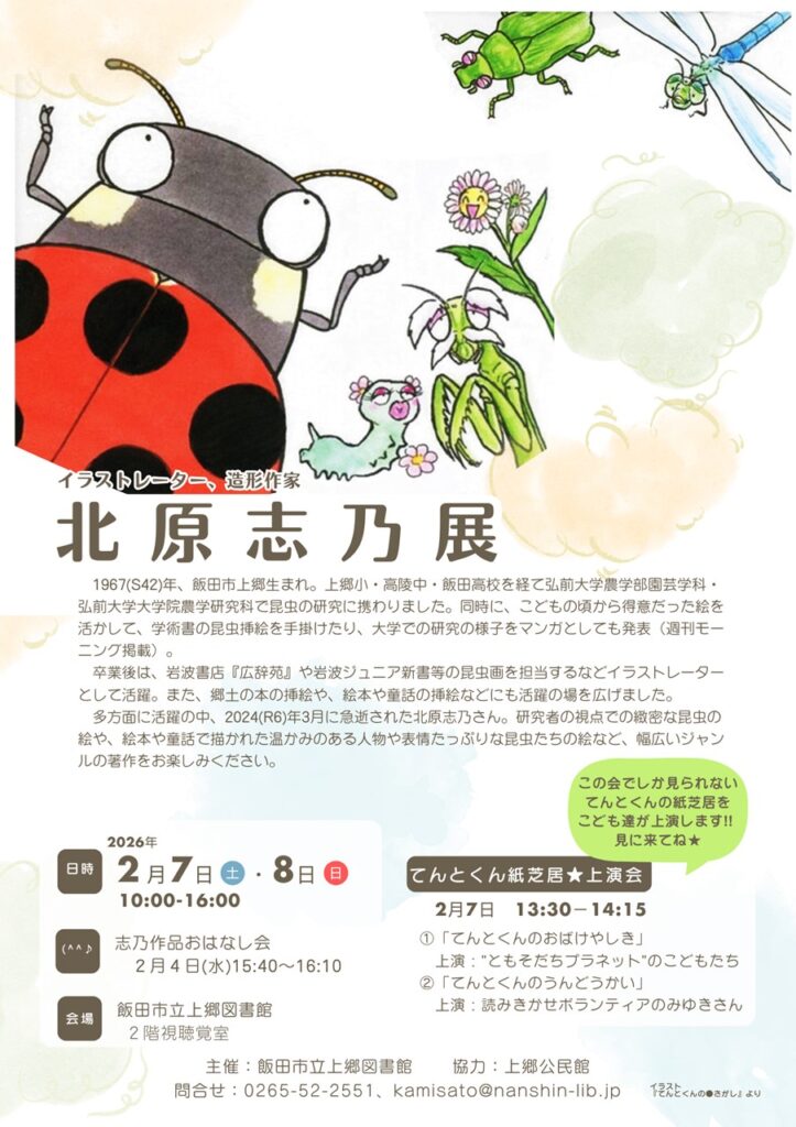 2026.2/7(土)~2/8(日)、飯田市立上郷図書館において、北原志乃展が開催されます![]()