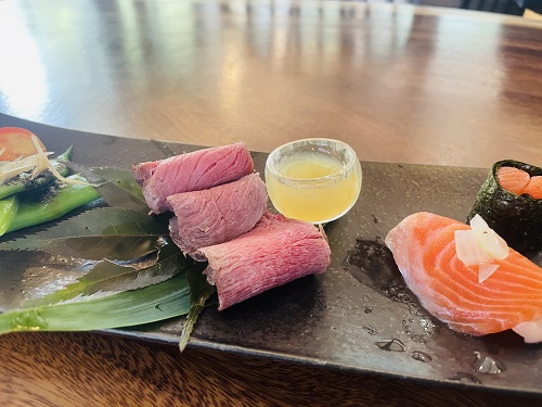 ローストビーフよりもさっぱりとした味で、とても食べやすく、個人的にはこちらのシカ肉の方が好みですね![]()