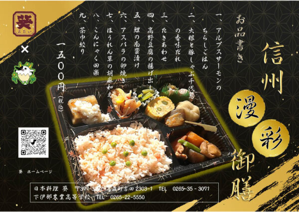 下農アグリサービス科では、地産地消を推進するために、地元飲食店の協力のもと“南信州の推し食材”をふんだんに活用した弁当を開発しています。
