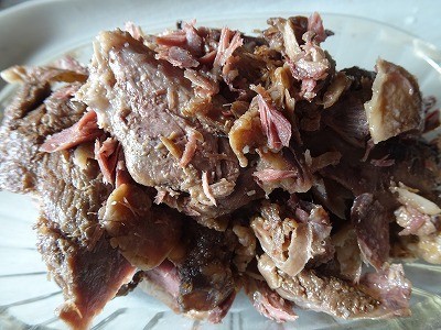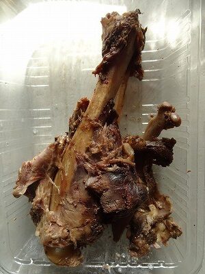 とあるルートから阿南町和合の方が調理された猪肉を頂き、骨と肉に分けて、塩コショウを振りかけていただきました。