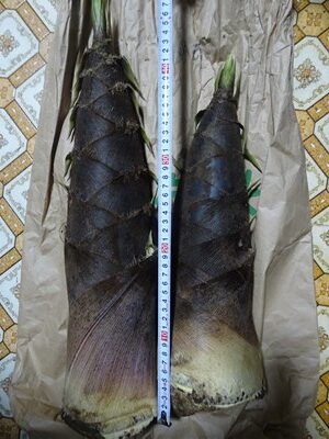 職場の仲間からタケノコを頂きました😊 モウソウチクという種類で、ご覧のとおり、長さ40cmを超える大物です。