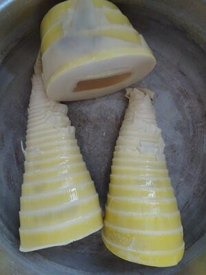 米とぎ汁に重曹を少し加え、煮立たせ、一晩そのままにし、アクを抜きました。