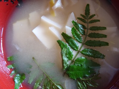 翌朝、山椒の芽を添えて、美味しく味噌汁で頂きました🥣