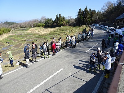 4/12(土)、「日本の棚田百選」に選ばれている飯田市芋平のよこね田んぼで畔塗作業がありました。当課からはK課長以下4名が参加しました!!