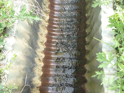 【経年劣化で穴の開いた排水路:水路を更新します】