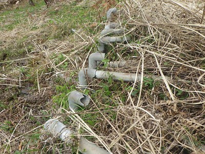 【経年劣化で破損した横孔ボーリング:傷んだ塩ビ管を取り替えます】