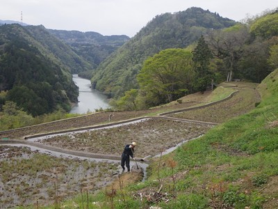 また、改修予定の地すべり防止施設を確認していたところ、畦塗りをしている方がいて、お声を掛けたら以前大変お世話になったNさんでした。職人芸の美しい仕上がりと天竜川を望む絶景に感動しました![]()