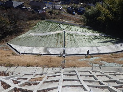 地すべり対策事業平久地区(阿南町)の現場については、2025.12.22 付けのブログ(下記記事)で紹介しましたが、最後に残っていた最下部の土止工が完了したので再度紹介いたします![]()