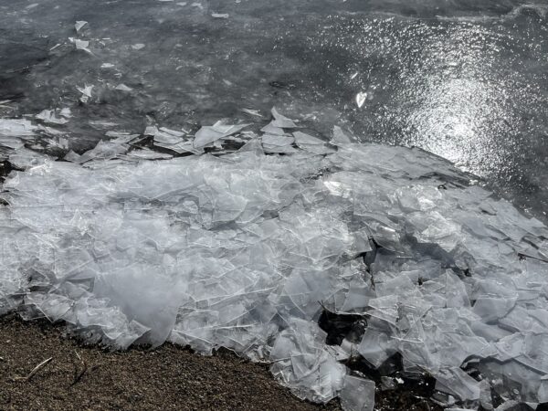 氷片が風の力で岸に押し上げられる「寄せ氷」が見られました。