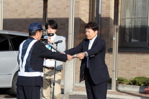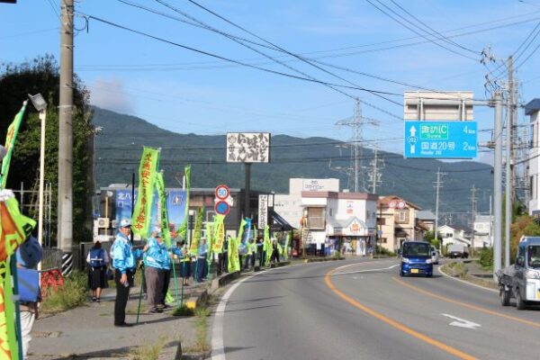 式の後には秋の全国交通安全運動出陣式に参加し、街頭指導を行いました。