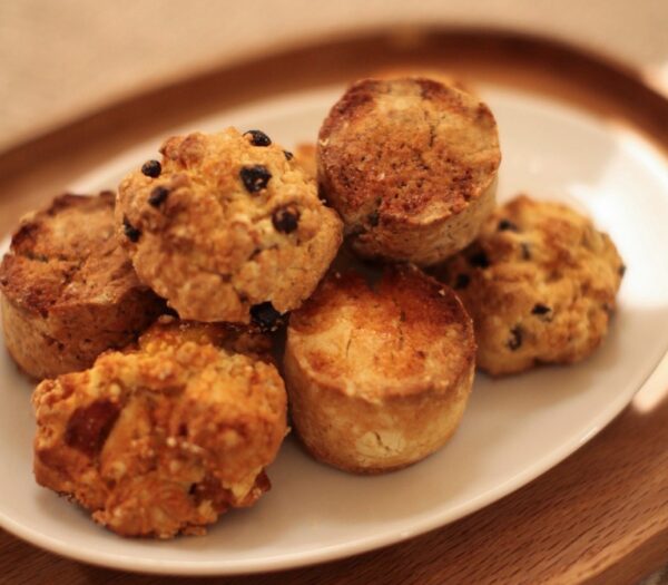 温泉と直接的な関係があるわけではありませんが、リビセンカフェでも売られている人気のスコーンを味わっていただきました。こちらのスコーンは、傷がついてしまって贈答品にはなれなかったリンゴ、そして長野県の地粉を使ったもの。サイズは大きめで一つ食べただけでも満足感があります!