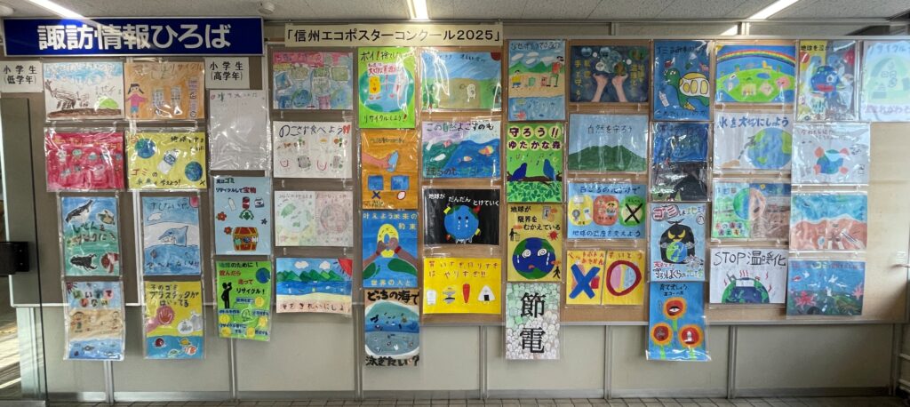 本年度開催されました「信州エコポスターコンクール2025」へ諏訪地域から応募された全58作品を、諏訪合同庁舎1階県民室で2月8日(日)まで展示します。